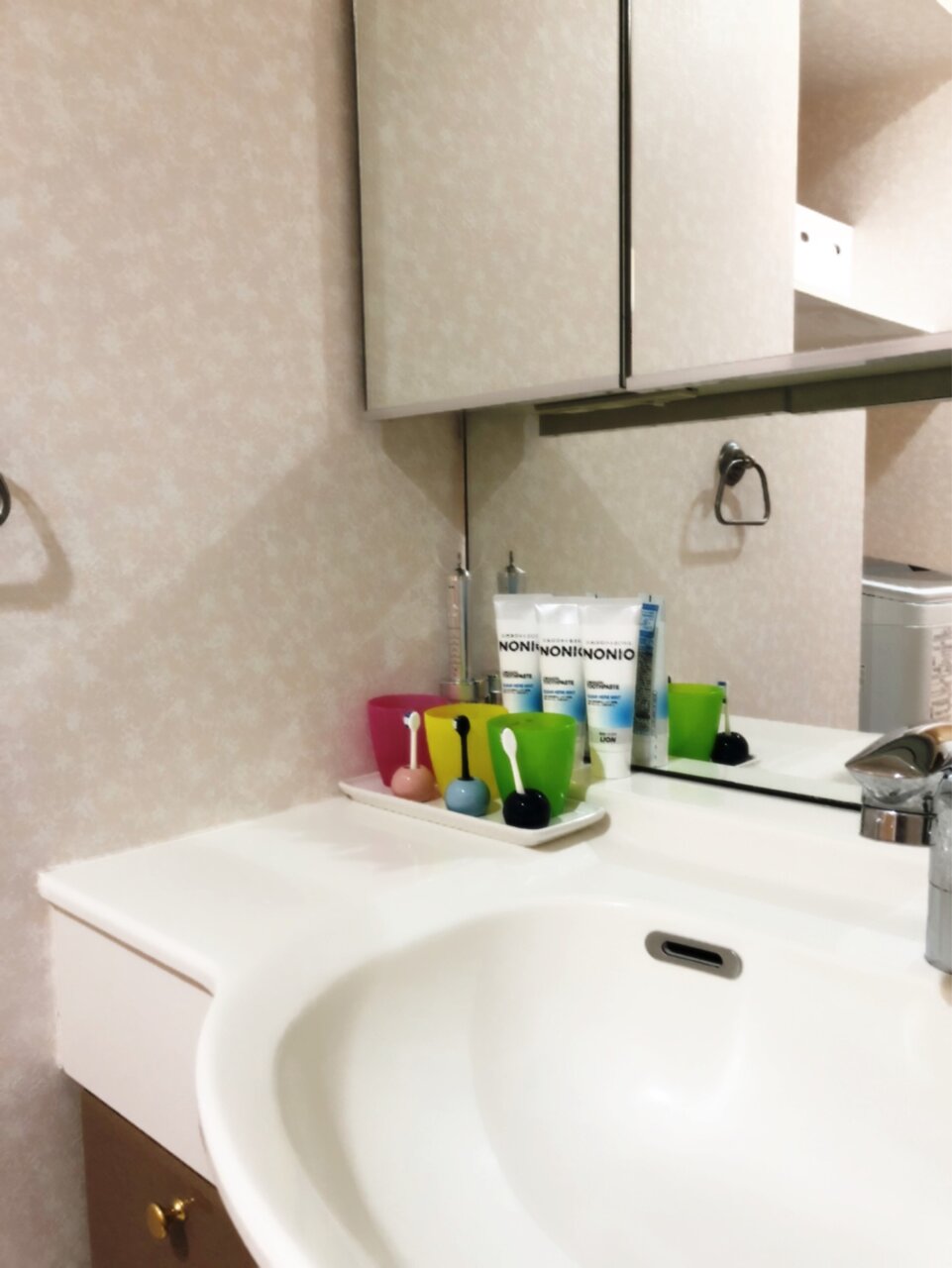 息子は歯ブラシもコップも元の位置に戻さない、水もバシャバシャ飛ばすし。